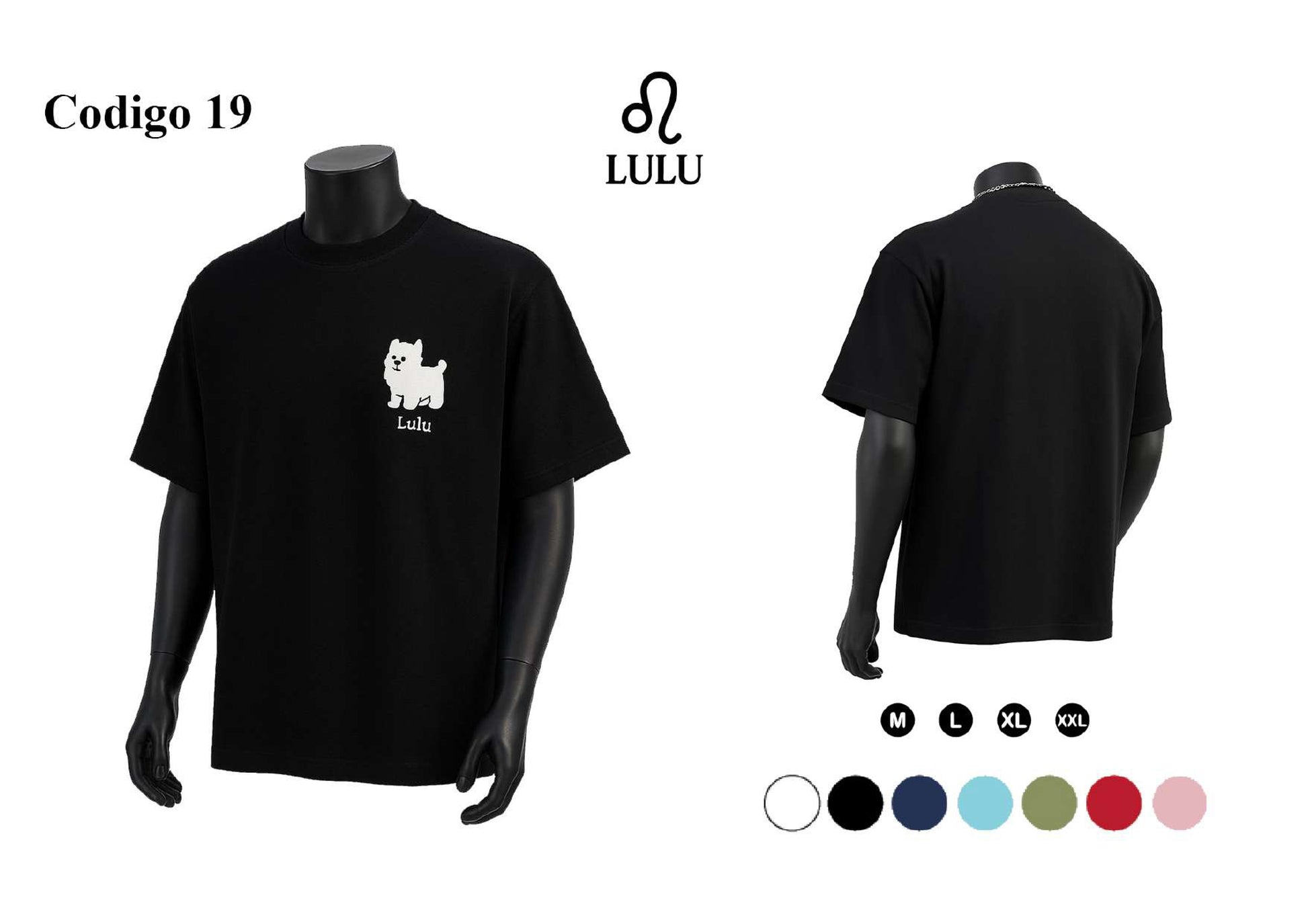 Diseño frontal: Gráfico de perro blanco y "Lulu".