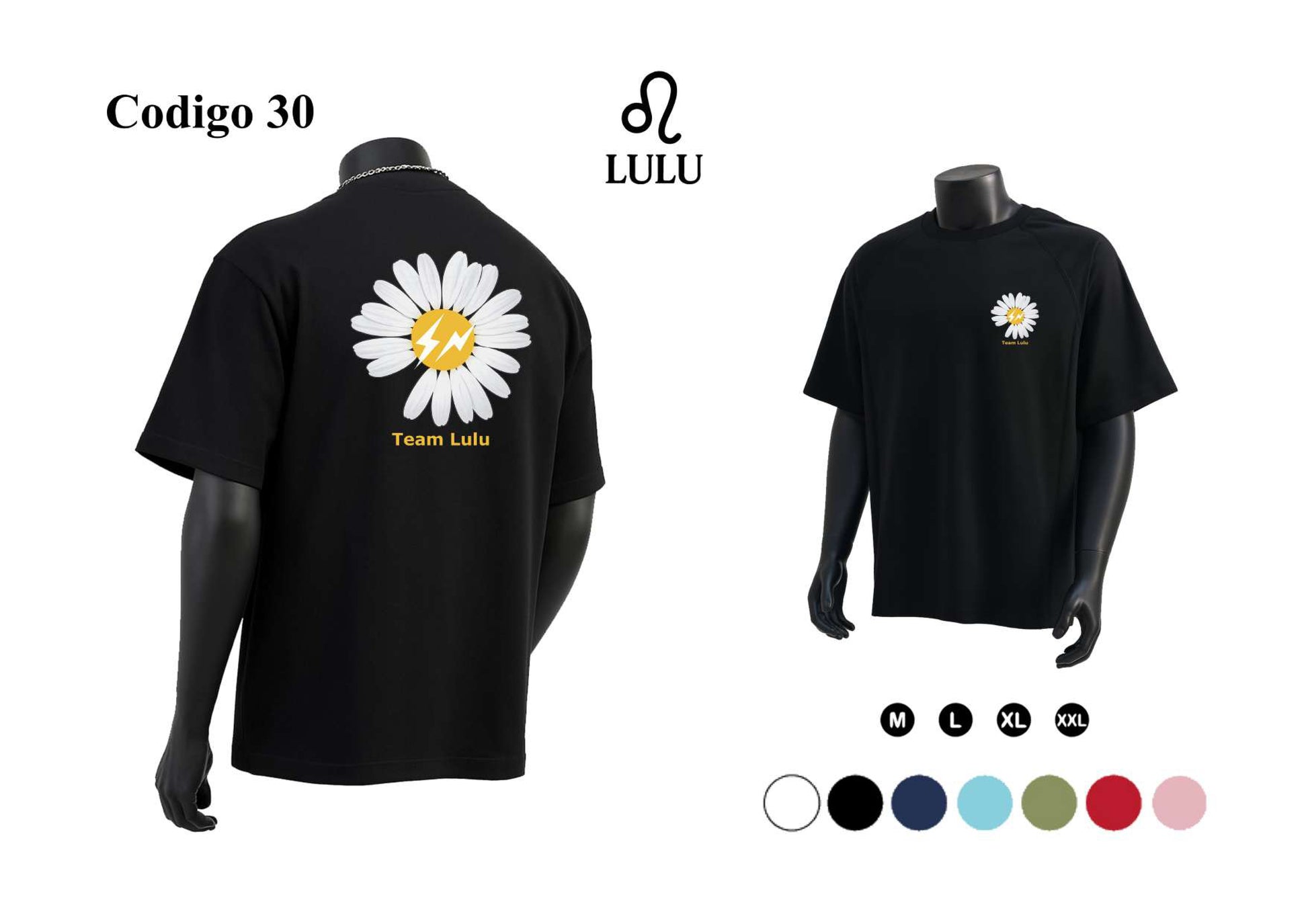 Diseño: Gráfico de margarita con rayos y "Team Lulu".